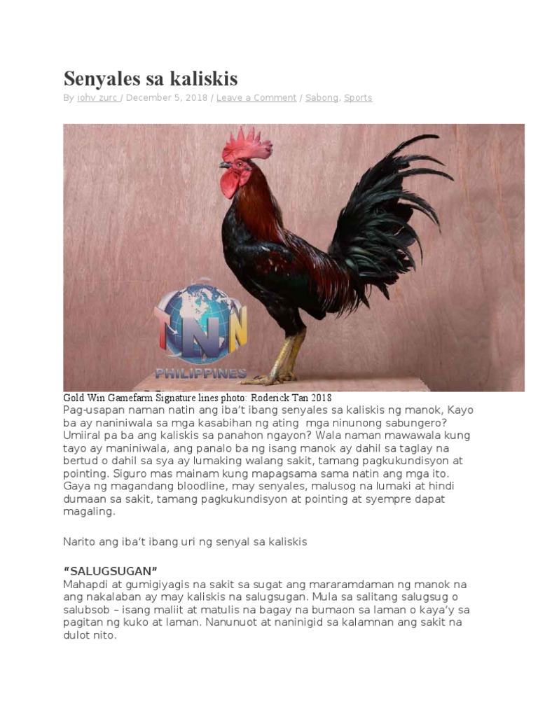 Maraming alamat o kuwento na maaaring kapulutan ng tunay na sinimulan ng sabong. Isinama sa wikang Filipino ang mga Kastilang salitang hiram bilang resulta ng 333 taon ng pakikipag-ugnayan sa wikang Kastila. 2102020 Kapag hindi ito maagapan maaring tamaan ang buong populasyon ng iyong manukan.