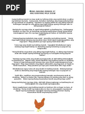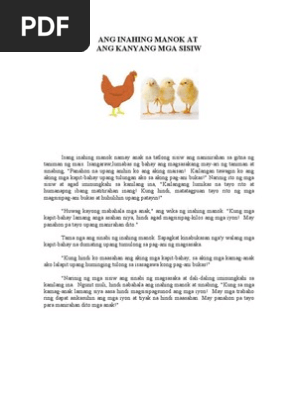 Ang Inahing Manok at ang kanyang mga sisiw Sa silong ng isang puno ay may naninirahan na isang inahing manok na may anak na limang sisiw. LDS More than once He has said that He would gather us to Him as a. Narinig ito ng mga.